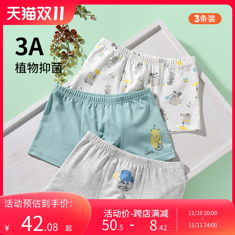 【产品名称:宜而爽儿童内裤男女童60支精梳棉印花平角短裤艾草抗菌内裆3条装】