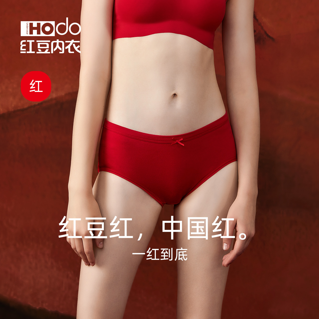 【产品名称:红豆本命年大红色内裤女士纯棉裆喜庆结婚礼物夏中腰三角裤1条装】