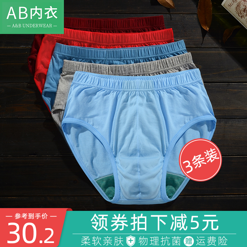 【产品名称:3条装AB男士精梳纯棉丝光大码中老年爸爸高腰抗菌三角裤内裤1922】