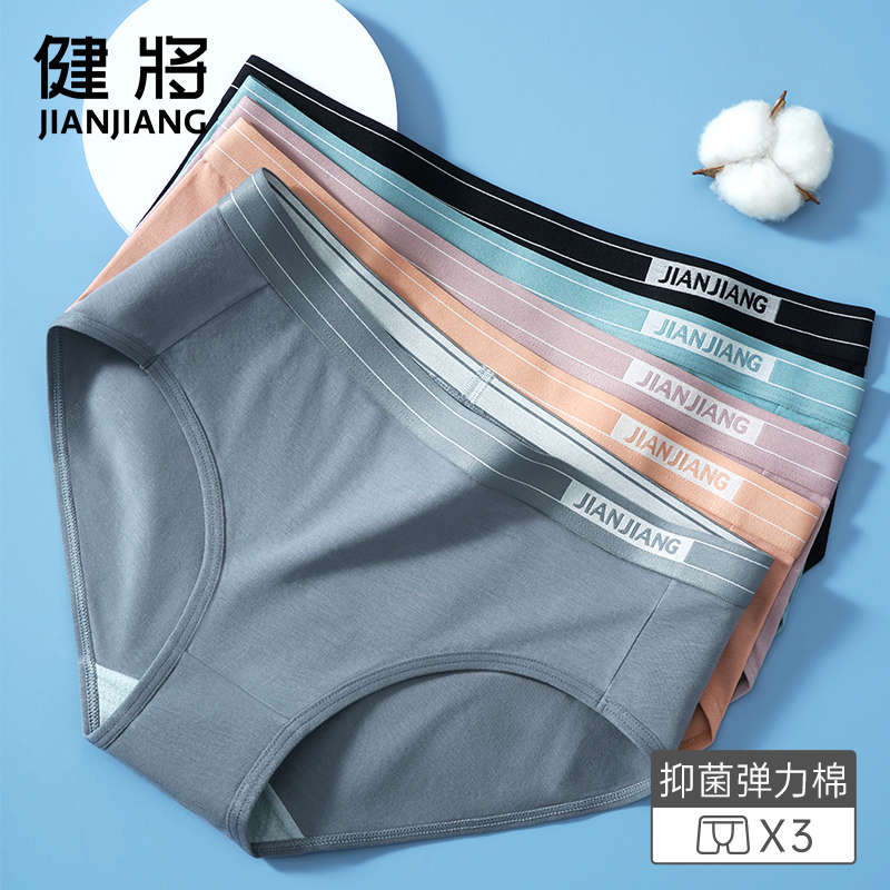 【产品名称:健将情侣内裤一女一男纯棉少女士三角裤透气抗菌四角平角短裤】
