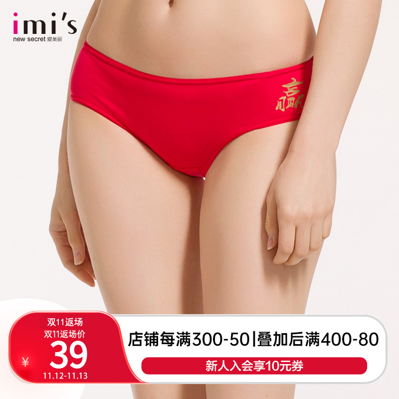 【产品名称:爱美丽IMIS内裤女舒适棉感纯色红品低腰包臀平角裤IM23AQJ3】