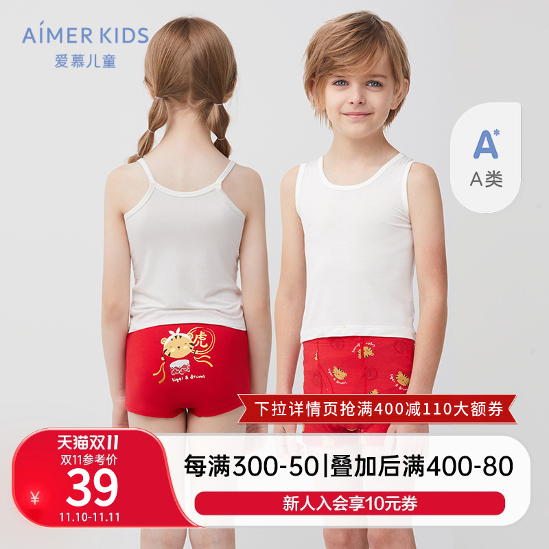 【产品名称:爱慕儿童本命年红色内裤莫代尔印花男孩女孩中腰平角裤三角裤卡通】