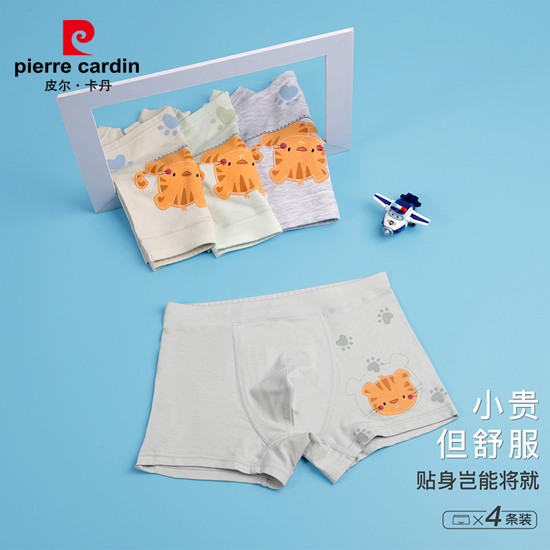 【产品名称:Pierre Cardin/皮尔卡丹男童内裤中大童平角裤四角棉质底裤/4条装】