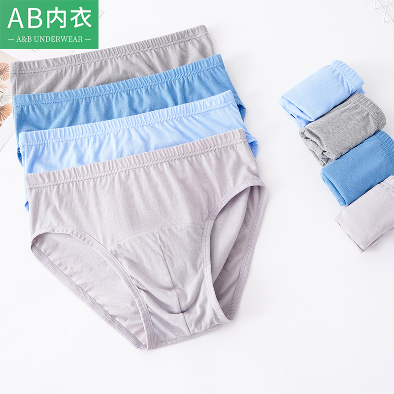 【产品名称:4条AB男士内裤纯棉中高腰三角裤宽松大码爸爸中老年全棉抗菌短裤】