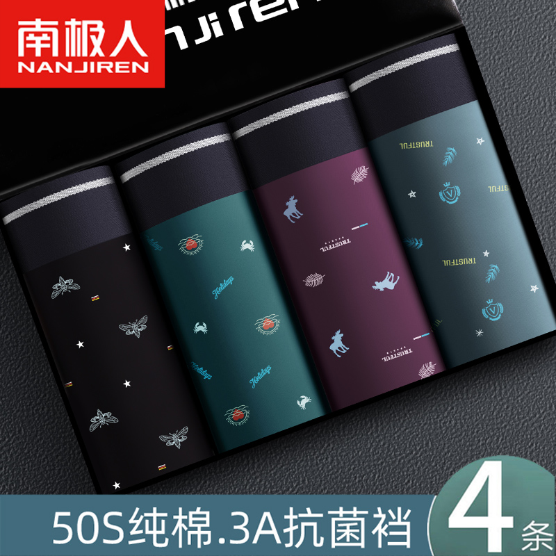 【产品名称:南极人男士内裤男生纯棉平角裤夏季青少年大码抗菌四角短裤头男款】
