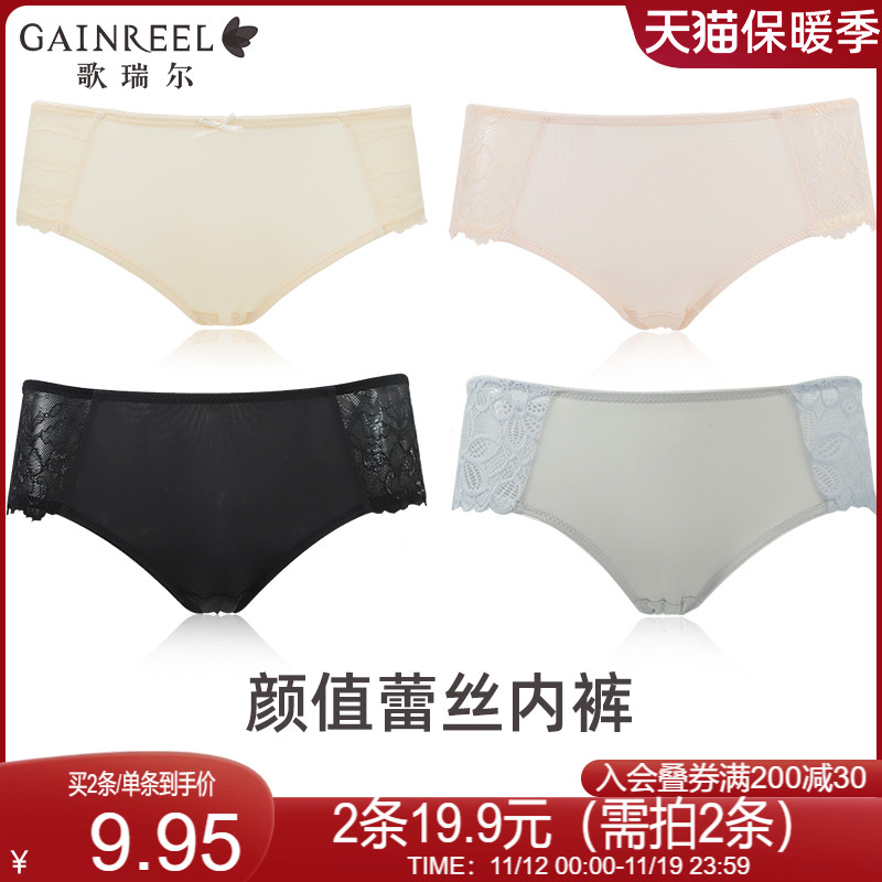 【产品名称:歌瑞尔蕾丝裸感亲肤透气内裤女纯棉裆柔软中腰平角裤衩BWM22012】