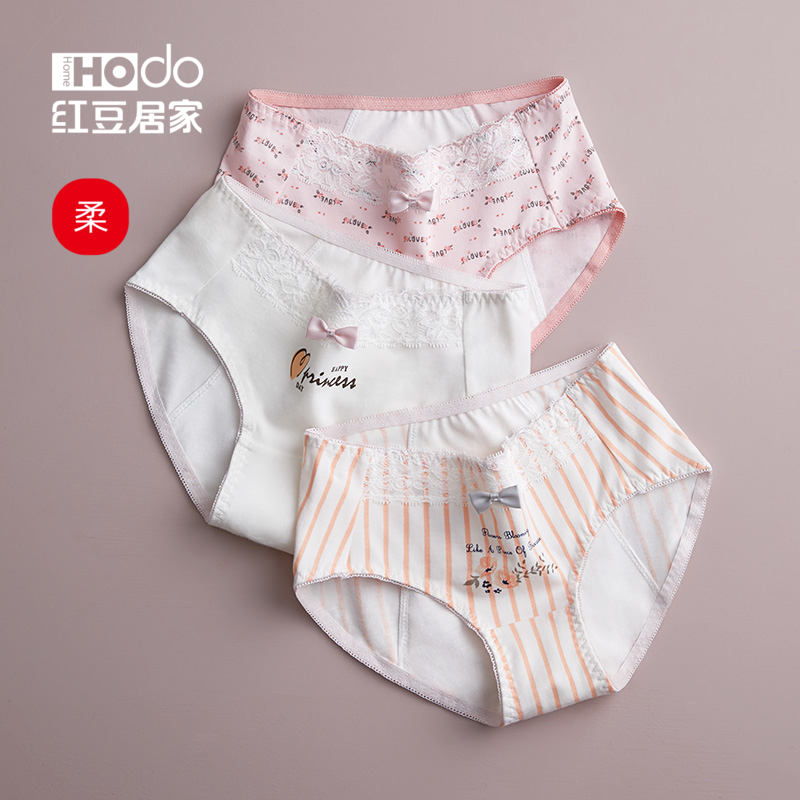 【产品名称:红豆生理裤女士纯棉裆中腰可爱月经期防漏例假大姨妈三角内裤夏季】