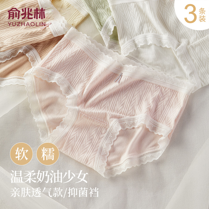 【产品名称:俞兆林女士内裤女抗菌纯棉裆日系少女纯色透气蕾丝花边薄款三角裤】