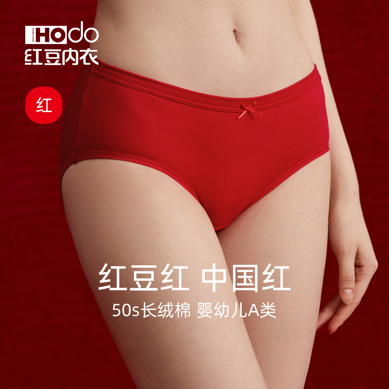 【产品名称:红豆女士本命年内裤大红色纯棉裆新娘结婚礼物龙年中腰三角裤1条】