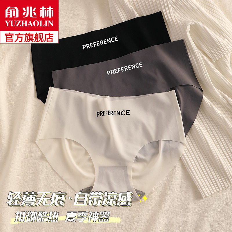 【产品名称:俞兆林冰丝内裤女士无痕纯棉全棉抗菌裆中腰夏季清凉薄款三角短裤】