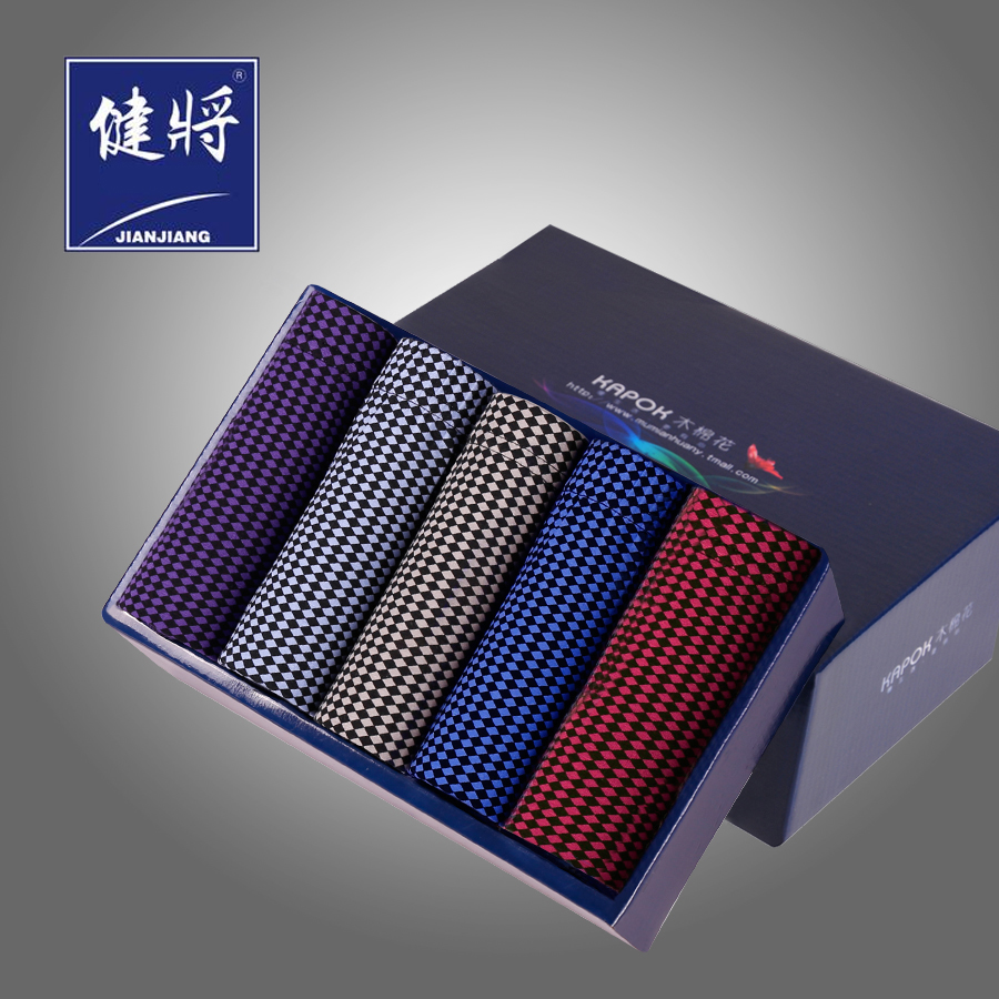 【产品名称:3条装健将男士内裤平角裤小格子花纹中腰 四角内裤宽腰礼盒装】
