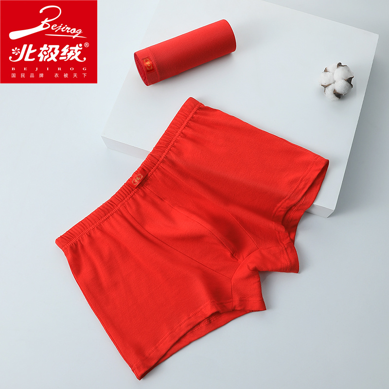 【产品名称:北极绒大红色内裤男士平角裤本命年属虎年四角裤结婚礼物鸿运底裤】