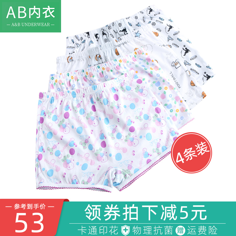 【产品名称:4条AB儿童内裤精梳纯棉男女童宝宝平角裤学生卡通四角抗菌短裤头】