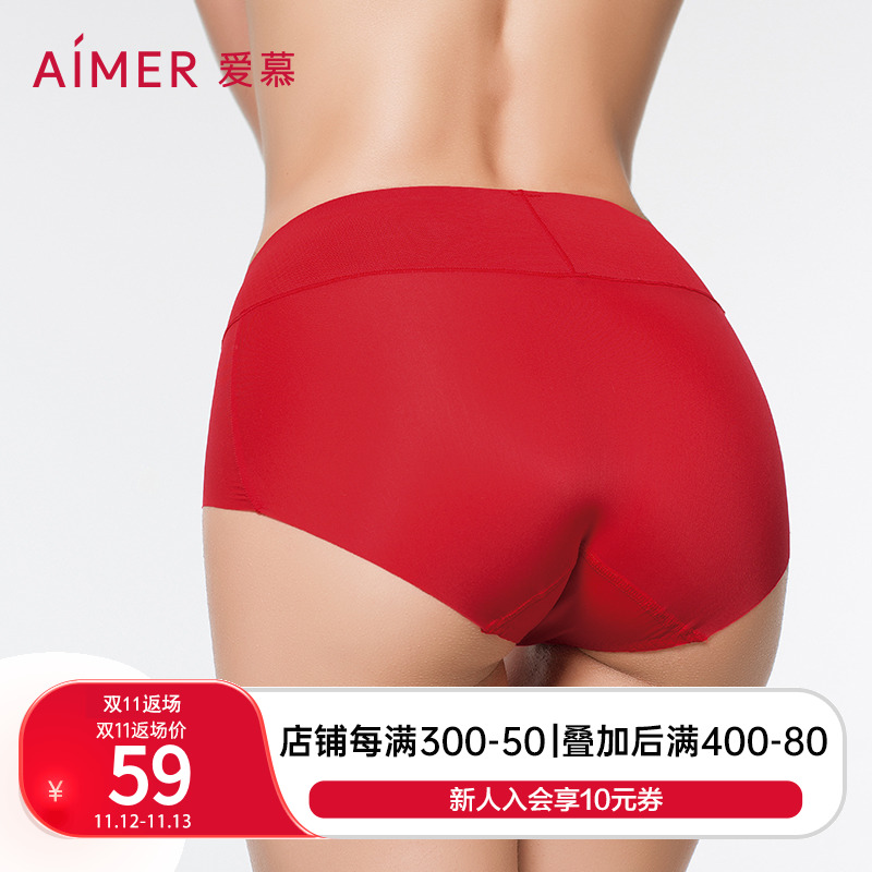 【产品名称:爱慕内裤女士无痕贴肤透气轻薄款红色纯棉底裆中腰三角裤AM22100】