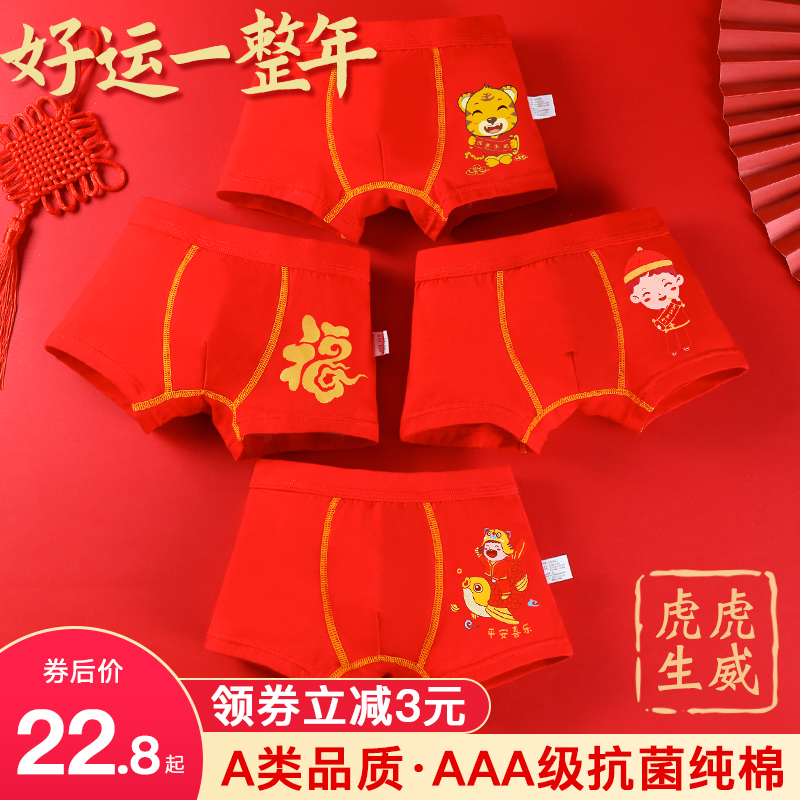 【产品名称:儿童红色内裤男童本命年12岁纯棉短裤四角中大童13男孩平角虎年女】