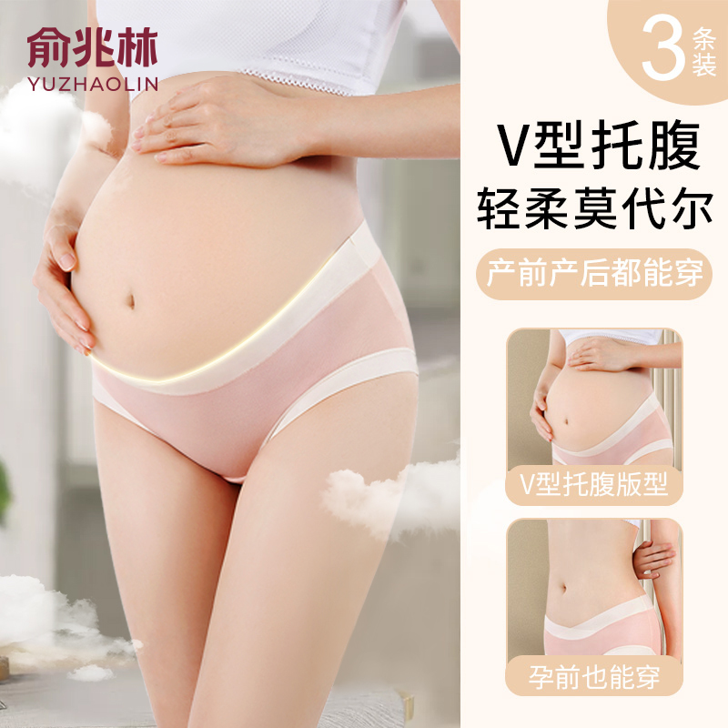 【产品名称:俞兆森女士莫代尔内裤托腹产孕妇全棉底裆抗菌三角裤内裤(3条装)】