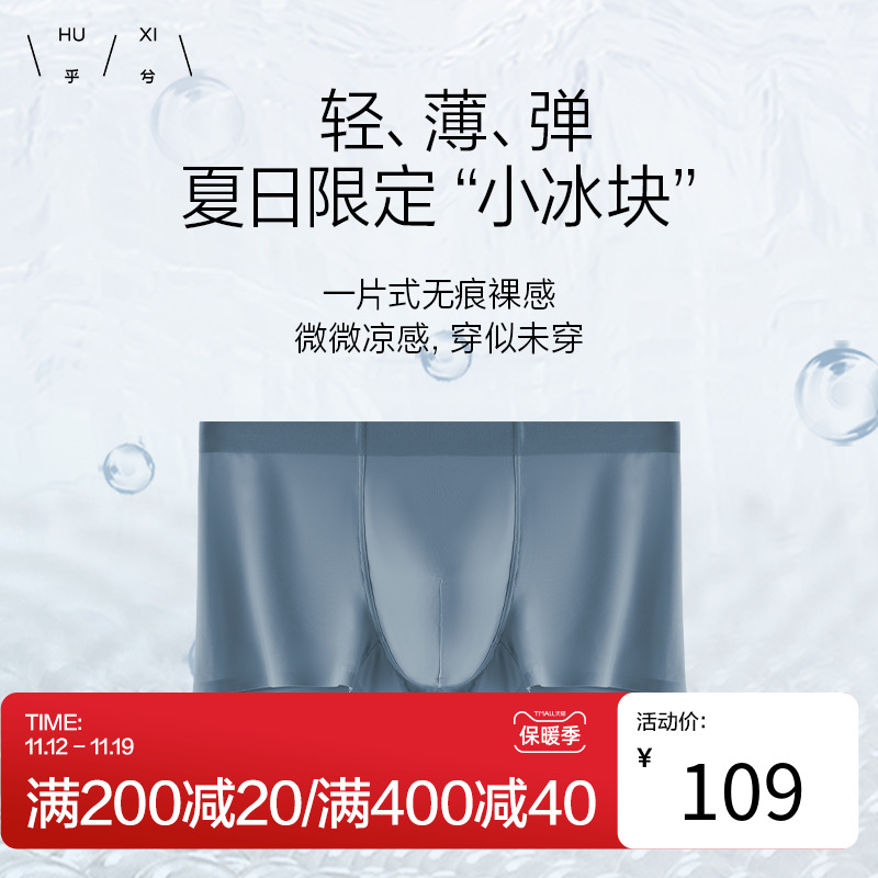 【产品名称:【3条装】乎兮男士平角裤凉感冰丝内裤男5A抗菌透气无痕速干】