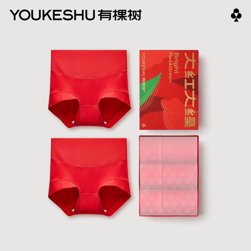 【产品名称:有棵树G级内裤女本命年纯棉全棉裆抑菌高腰兔年红色三角女士内裤】