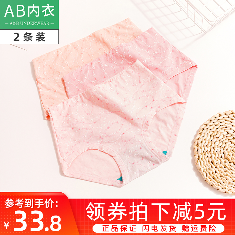 【产品名称:AB内衣女士中高腰棉莱卡弹力小平角裤妈妈印花短裤头大码内裤F808】