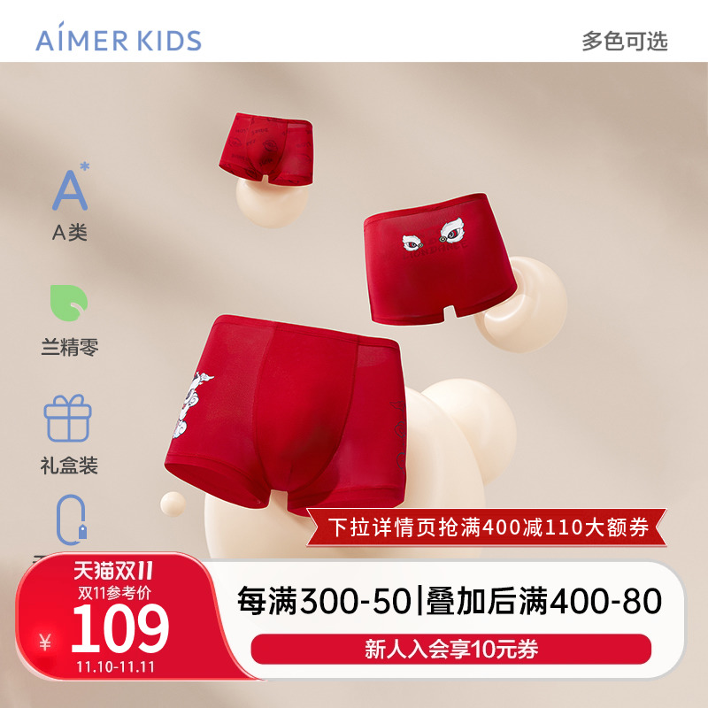 【产品名称:爱慕儿童红色内裤天使小裤男女孩中腰平角裤红品小裤3条装】