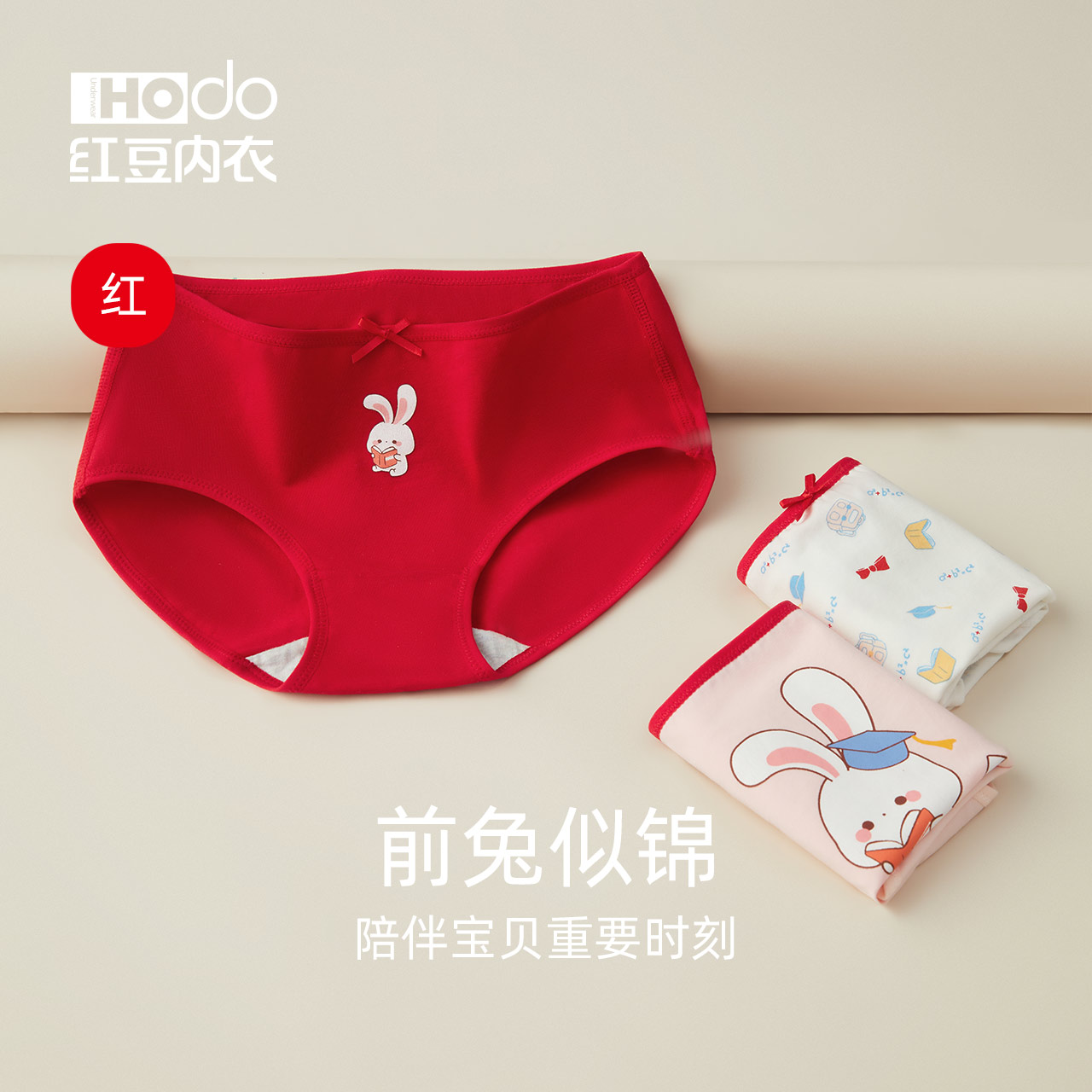 【产品名称:红豆女童本命年红色三角裤兔年儿童短裤纯棉裆中大童女孩宝宝内裤】