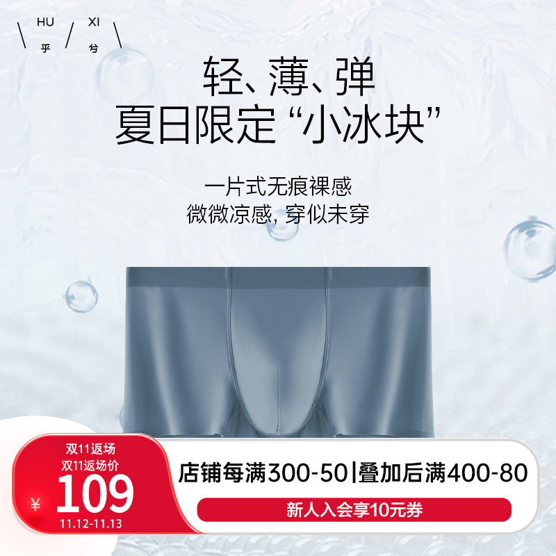 【产品名称:【3条装】乎兮男士平角裤凉感冰丝内裤男5A抗菌透气无痕速干】