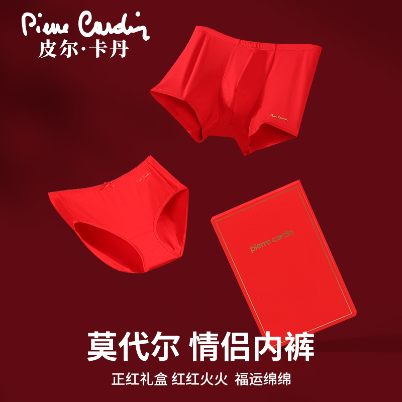 【产品名称:皮尔卡丹红内裤男莫代尔红色内裤女红内裤情侣一对红袜属龙年结婚】
