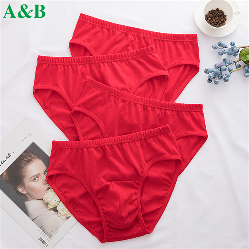 【产品名称:4条AB男士内裤男纯棉本命年大红色三角裤牛年结婚全棉大码内裤头】