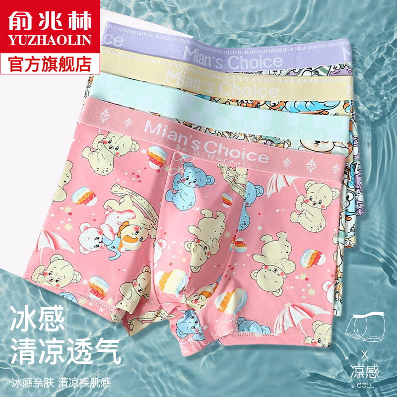 【产品名称:男士内裤男生冰丝夏季纯棉四角短裤青少年运动猛男粉色男款裤头潮】
