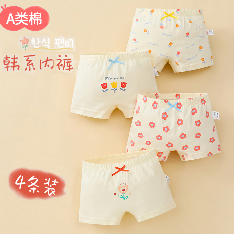 女童内裤纯棉平角儿童小女孩短裤头100%不夹pp全棉四角女宝宝无骨