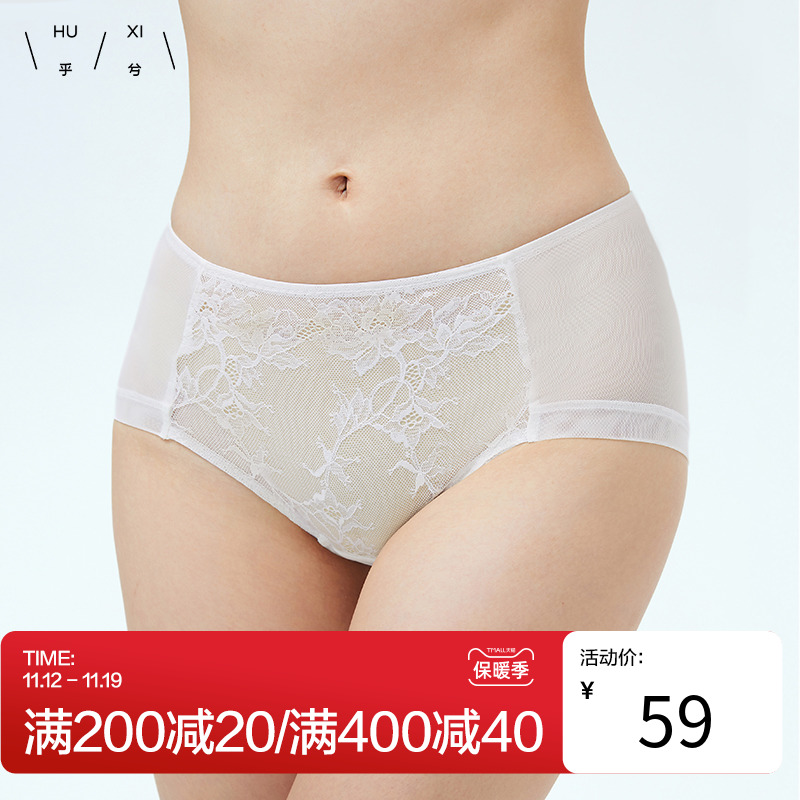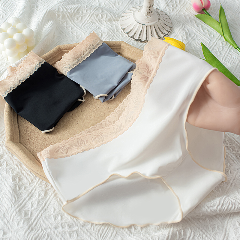 【产品名称:乎兮亲肤柔纱裤性感蕾丝拼接女式内裤轻薄无痕透气棉裆中腰平角裤】