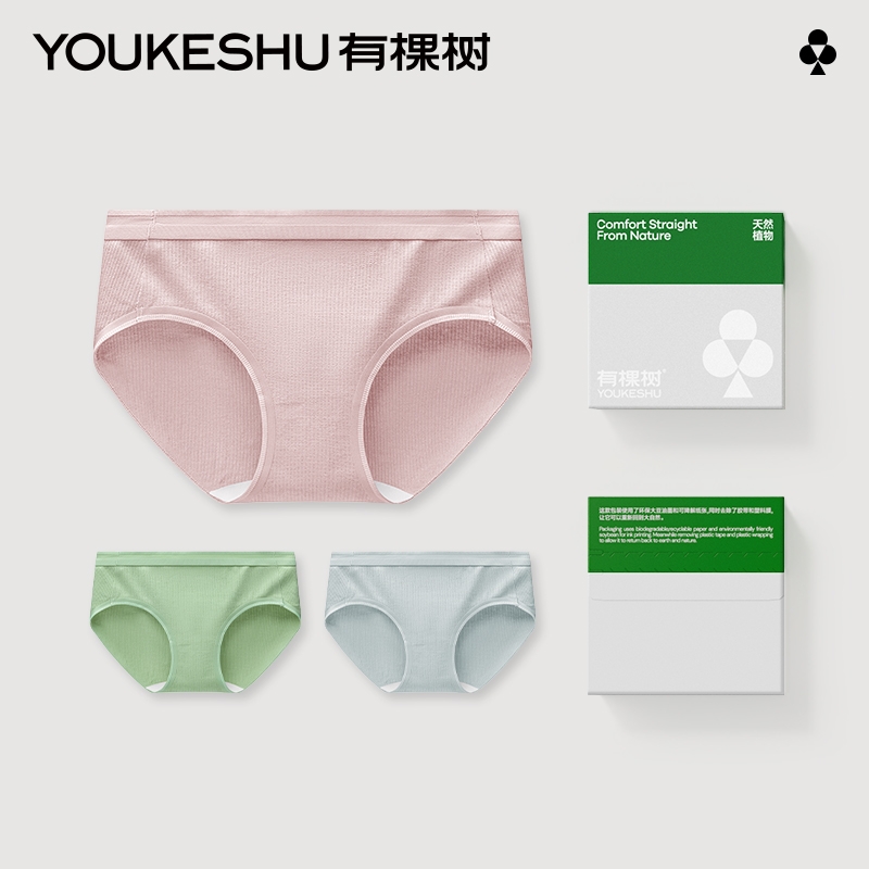 【产品名称:有棵树女士内裤纯棉全棉裆抗菌中腰透气少女生式三角短裤头新款】