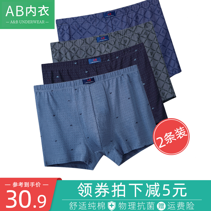 【产品名称:2条AB内裤男士纯棉中高腰印花短裤中老年大码全棉宽松平角裤Y561】