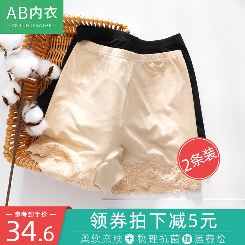 【产品名称:AB内裤女士夏季薄款再生纤维性感蕾丝边提臀防走光三分打底安全裤】