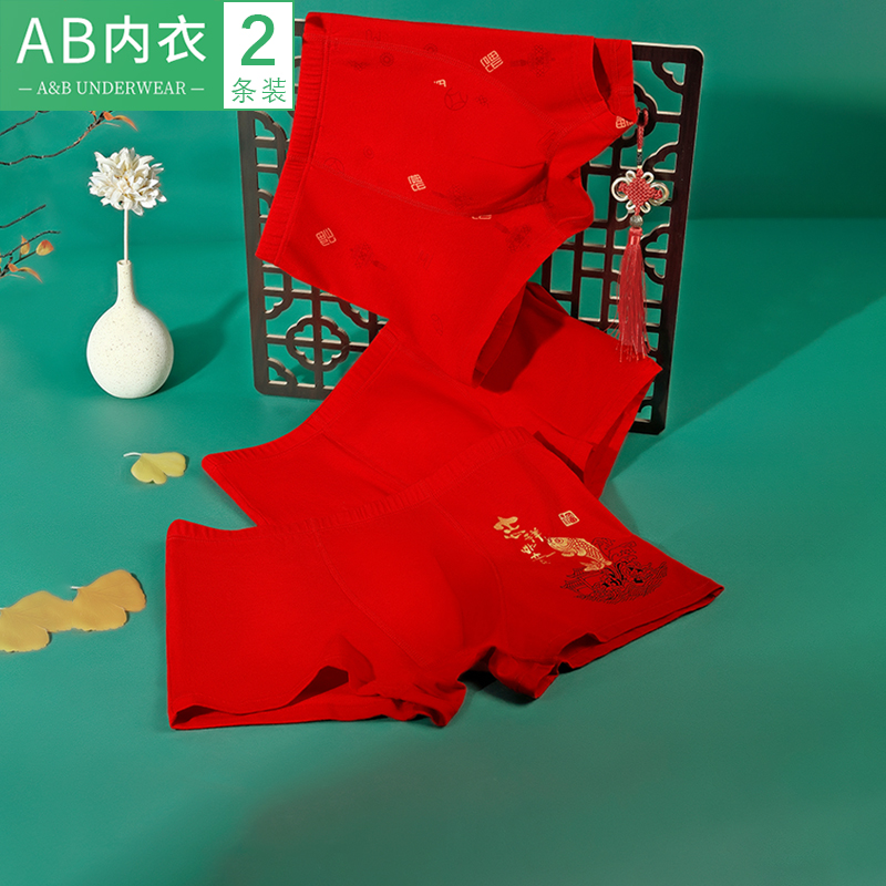 【产品名称:AB内衣男士精梳棉本命年大红内裤结婚喜庆红中高腰印花平角裤L619】