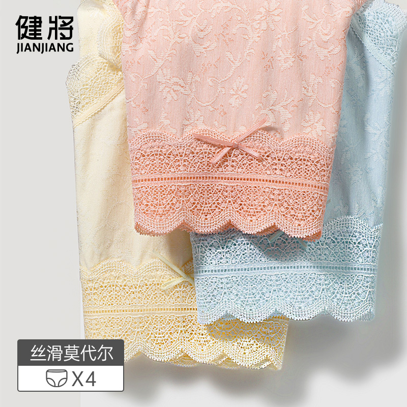 【产品名称:健将内裤女蕾丝性感包臀不夹PP莫代尔冰丝感妈妈平角女士三角裤衩】