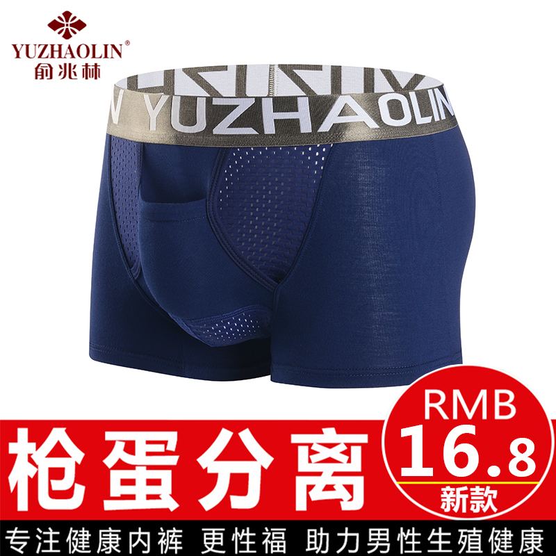 【产品名称:枪弹分离男士内裤男莫代尔夏季阴囊托冰丝网孔囊袋四角透气平角裤】