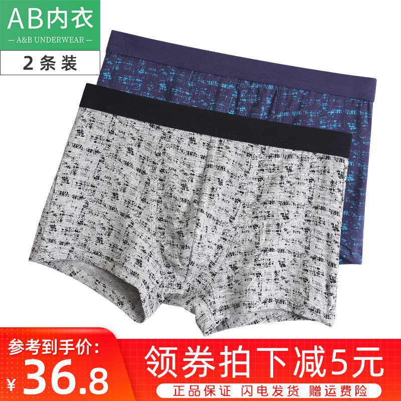 【产品名称:AB男士内裤夏薄款莫代尔弹力透气中腰平角裤青年印花短裤头Y817】