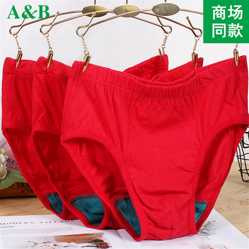【产品名称:4条AB男士内裤丝光棉本命年大红色高腰宽松大码抗菌三角裤头1922】