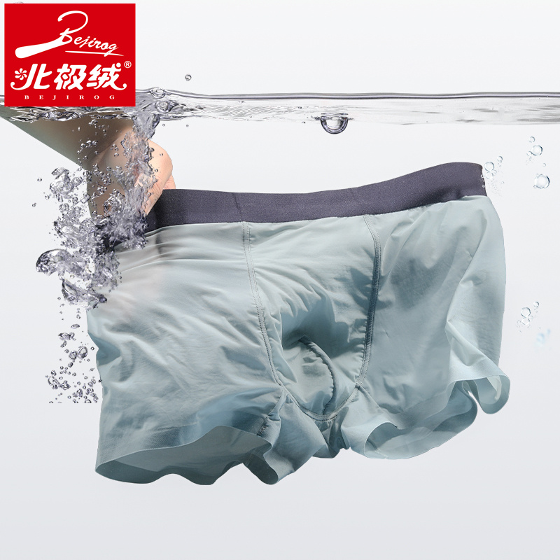 【产品名称:北极绒男士冰丝内裤无痕夏季薄款四角裤舒适透气平角裤个性感短裤】