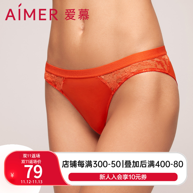 【产品名称:爱慕内裤女士红色本命年性感蕾丝薄款柔软透气低腰三角裤AM225531】