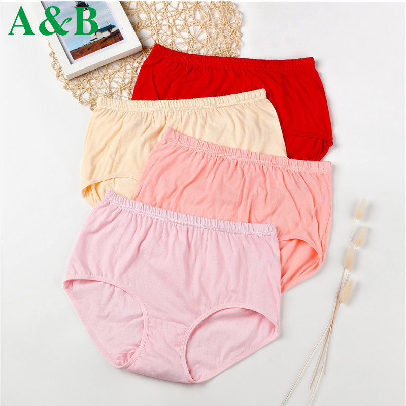 【产品名称:3条AB内裤女纯棉精梳棉高腰女士小平角裤全棉妈咪大码大红内裤女】