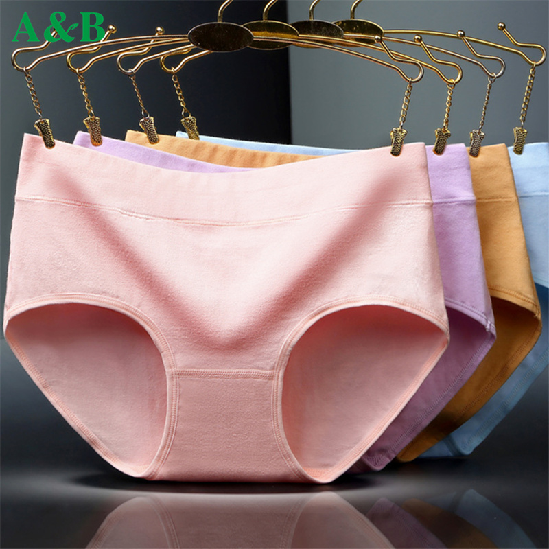 【产品名称:3条AB内裤女士100%纯棉档三角裤中腰妈妈收腹加大码小平角内裤女】