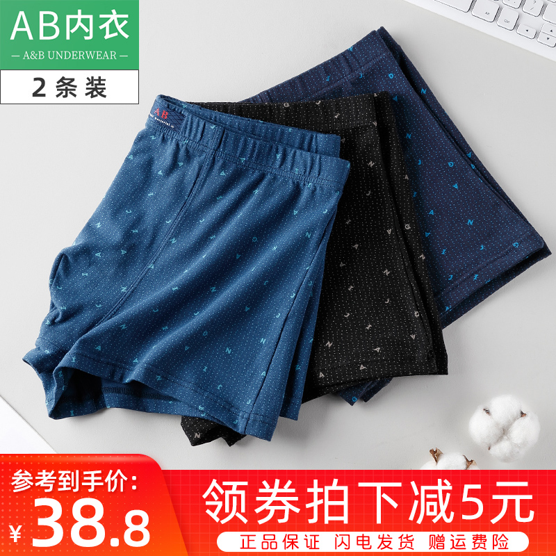 【产品名称:2条AB内裤男士棉莱卡弹力透气平角裤头青年中腰抗菌印花短裤Y503】