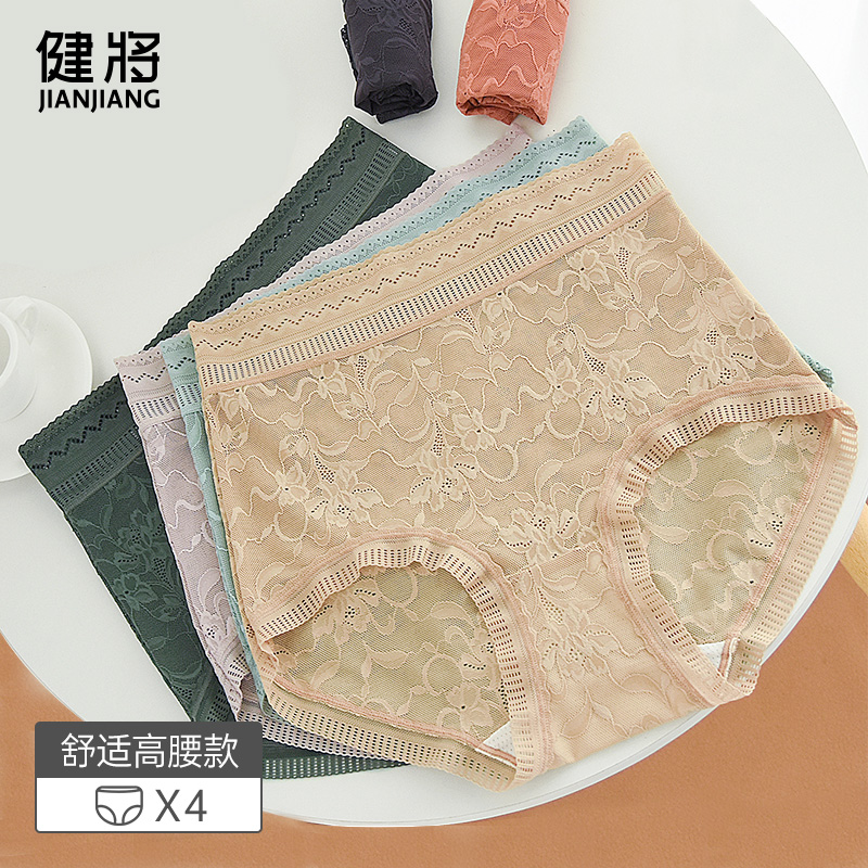 【产品名称:健将高腰内裤女士性感蚕丝小平角收腹提臀大码冰丝妈妈蕾丝三角裤】