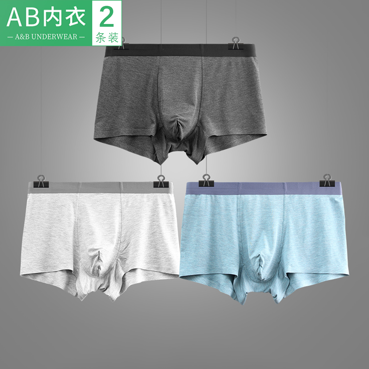 【产品名称:AB内衣男士莫代尔弹力薄款透气平角裤青年中腰商务明筋款内裤200A】
