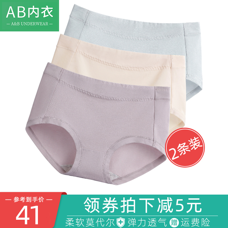 【产品名称:2条AB内裤女士莫代尔棉中腰平角裤弹力薄裆性感内裤无痕短裤D835】
