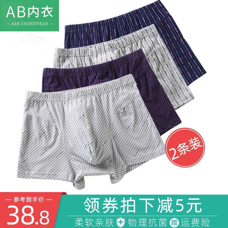 【产品名称:2条ab内裤男士弹力棉抗菌透气中老年平角裤宽松大码爸爸短裤0813】