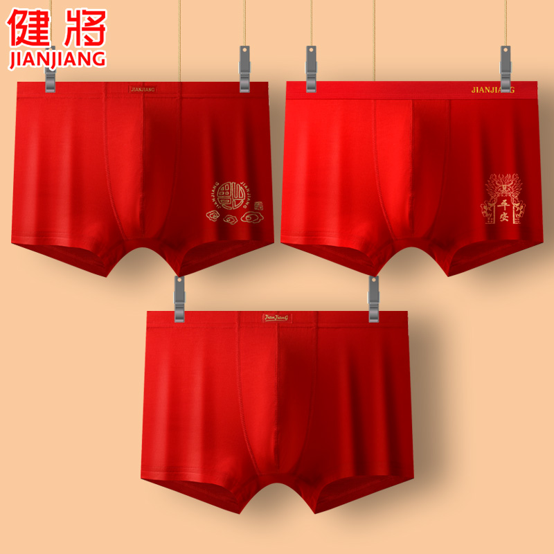 【产品名称:健将本命年男士内裤金龙印花平角裤大红色短裤龙年结婚新年四角裤】