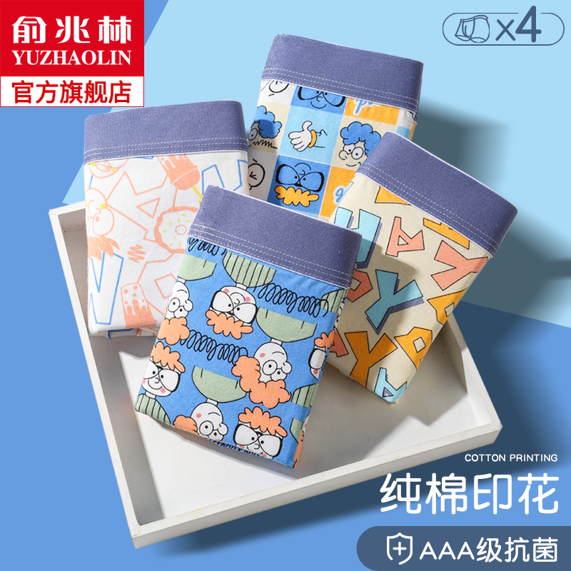 【产品名称:俞兆林男士纯棉内裤夏季薄款男生平角抗菌短裤青少年大码四角内裤】